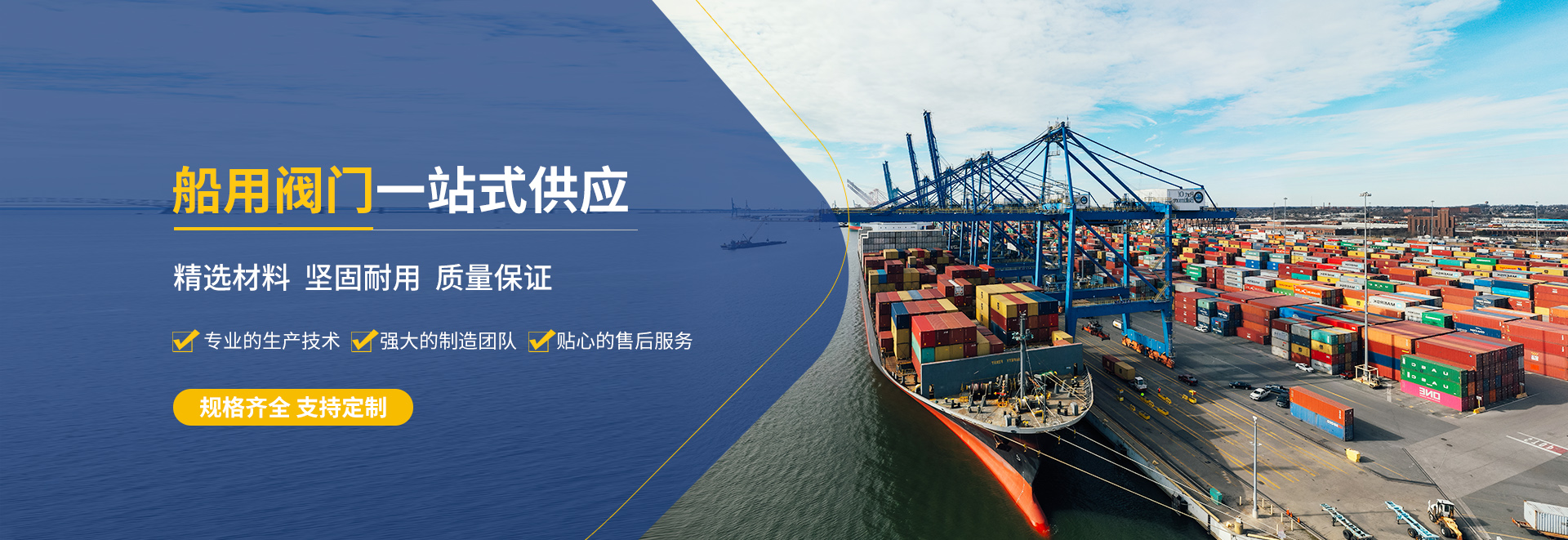 一家集研制,開發(fā),制造,檢測(cè),銷售于一體的船舶設(shè)備配套企業(yè),專業(yè)生產(chǎn)通徑DN6-DN1000mm,公稱壓力為0.1Mpa-16Mpa的各種材質(zhì)的船用閥門及船用附件、快關(guān)閥控制系統(tǒng)、舾裝件、儀器、儀表等。